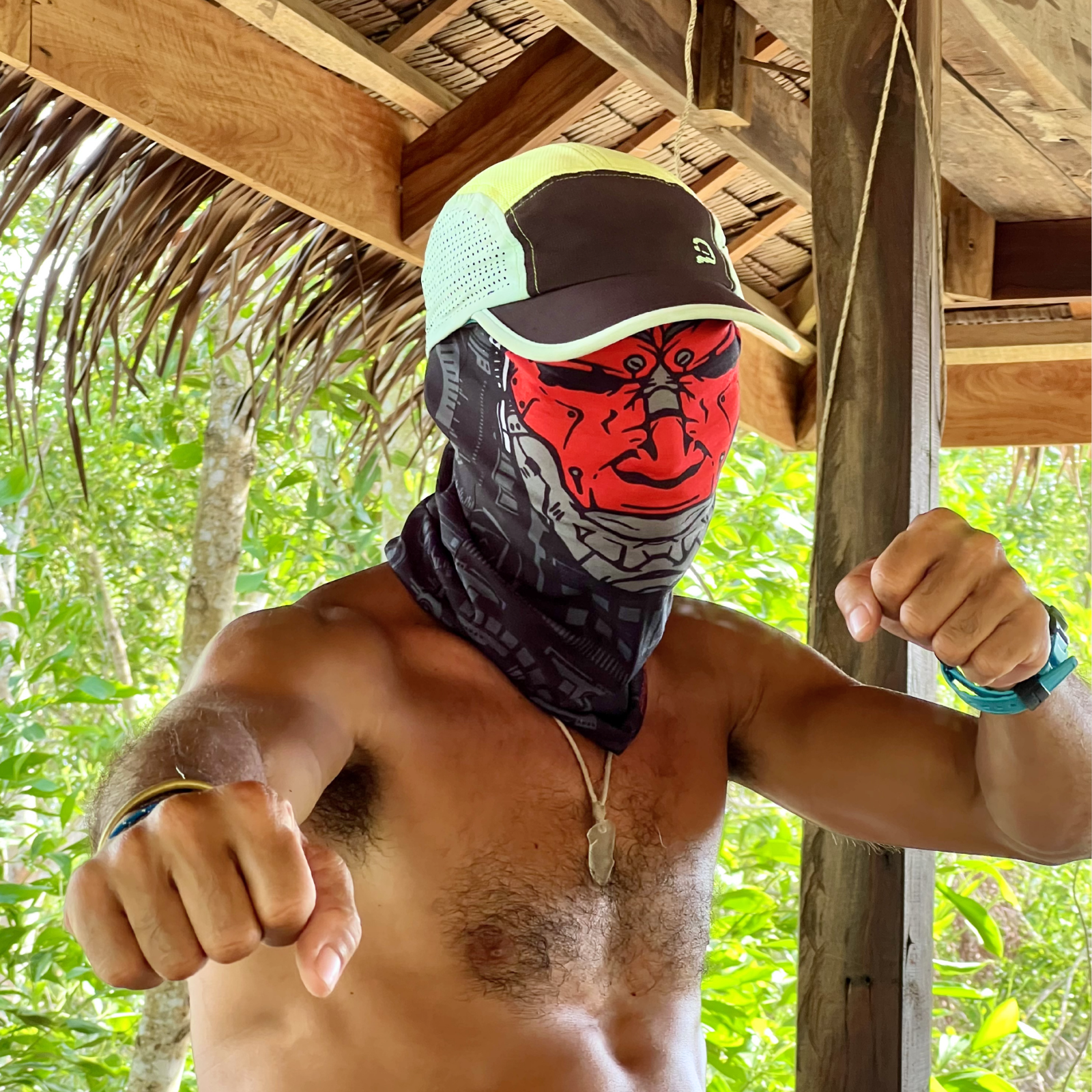 A bold expression of identity, forged as a scarred, mechanical visage in red and gray. Designed for a face-aligned fit, made with SUPER SOFT 4-way stretch material.